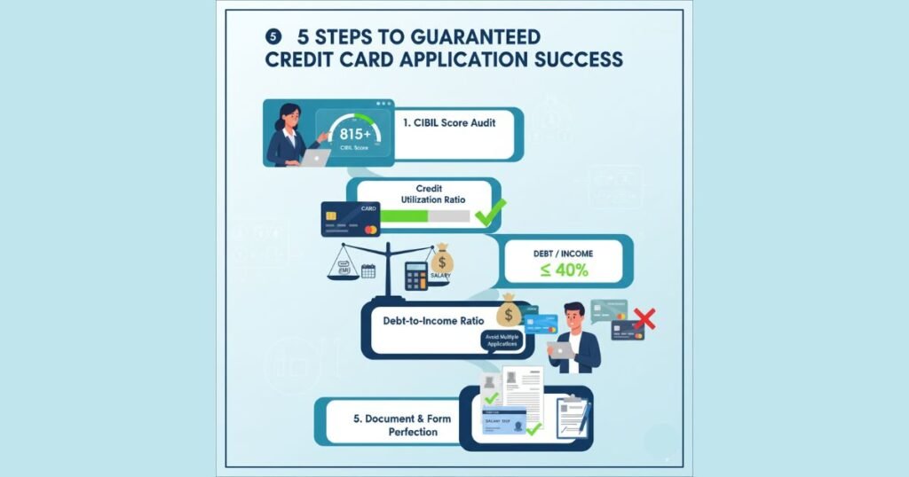 - The Strategic Move: Limit your applications. Each application results in a Hard Inquiry on your CIBIL report, and too many inquiries in a short period (e.g., 90 days) signals desperation to the bank’s underwriting system, marking you as a high-risk borrower. Use a card comparison tool to find 1-2 cards that perfectly match your CIBIL Score, DTI, and income status (Salaried or Self-Employed).